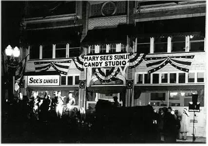 Despite the tough economy, Charles See forged ahead with plans to debut "Mary See's Sunlit Candy Studio," a See's chocolate shop and kitchen where customers could watch through giant plate-glass windows as See's confections were created using state-of-the-art equipment. Hollywood celebrities and eager crowds converged on the studio for an open house on November 24th, 1931.